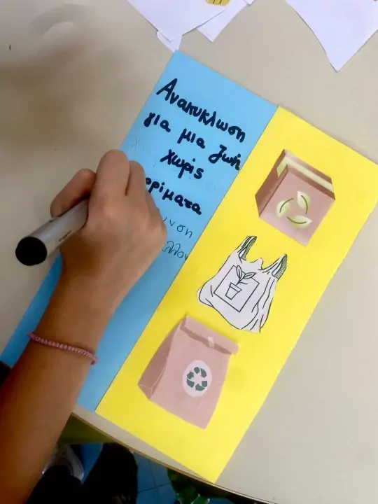 Στο πλαίσιο τής καλλιέργειας περιβαλλοντικής συνείδησης και τής ενίσχυσης τής αειφορίας που προωθεί το Α΄Αρσάκειο-Τοσίτσειο Γυμνάσιο Εκάλης, οι μαθητές τού τμήματος Β΄3 συμμετείχαν σε ένα διαφορετικό και δημιουργικό μάθημα που πραγματοποιήθηκε όχι στην αίθουσα διδασκαλίας ή στο εργαστήριο Καλλιτεχνικών, αλλά στον χώρο τής Σχολικής Βιβλιοθήκης των Αρσακείων-Τοσιτσείων Σχολείων Εκάλης.