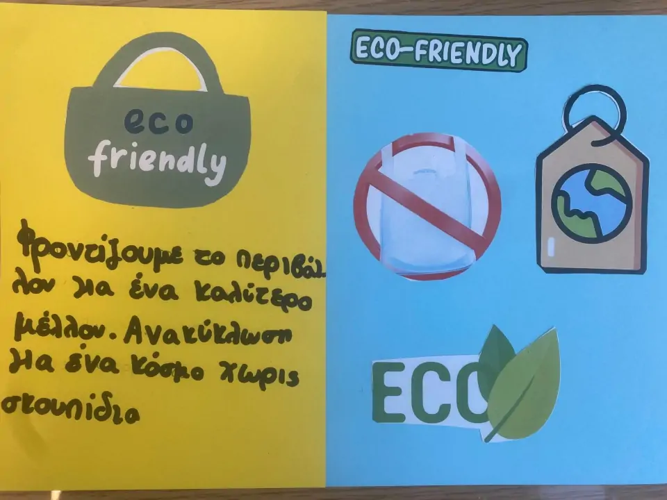 Έτσι, αξιοποιώντας έναν εναλλακτικό χώρο μάθησης και υιοθετώντας μια ολιστική παιδαγωγική προσέγγιση, το μάθημα αυτό είχε ως στόχο να ενισχύσει την ενεργό συμμετοχή των μαθητών σε θέματα που αφορούν στην προστασία τού περιβάλλοντος, ενδυναμώνοντας παράλληλα τις δεξιότητες συνεργασίας, δημιουργικότητας και κριτικής σκέψης. Συγκεκριμένα, με την καθοδήγηση τής καθηγήτριας των Καλλιτεχνικών κ. Κυριακής Πρεβενιού, οι μαθητές εργάστηκαν ομαδοσυνεργατικά σε στρογγυλά τραπέζια και δημιούργησαν αφίσες ευαισθητοποίησης για την ανακύκλωση, η οποία ήδη εφαρμόζεται στη σχολική μας μονάδα με τη συλλογή υλικών, όπως το πλαστικό και το χαρτί.
