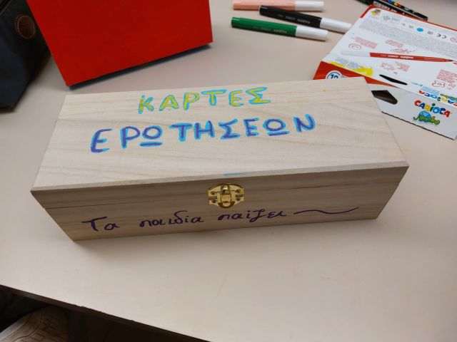 Τέλος, με τη συνεργασία όλων, ετοιμάστηκαν οι κάρτες των ερωτήσεων, το ταμπλό τού παιχνιδιού και το κουτί αποθήκευσης.