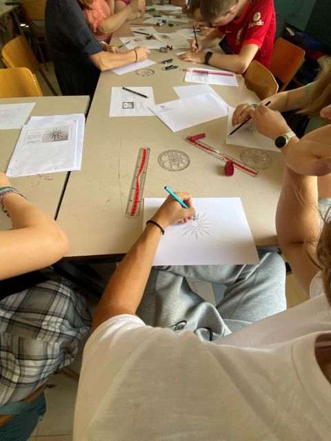 Με την καθοδήγηση τής καθηγήτριας κ. Κυριακής Πρεβενιού μικροί και μεγάλοι σχεδίασαν το “αστέρι τής Βεργίνας”.