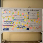 Human Dignity, Freedom, Democracy, Equality, Rule of Law, and Human Rights. Each student wrote their own thoughts, ideas, or short messages on colourful post-it notes, expressing what these values mean to them. Together, the notes created a vibrant and meaningful “Living Wall of Values” – a collective and creative expression of the principles that unite all European citizens. The activity was coordinated and supervised by Ms. Stoupa, English teacher and Erasmus+ programme coordinator, while the artistic design and layout of the board were prepared by Ms. Preveniou, Art teacher.