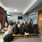 Στο δεύτερο μέρος τής επίσκεψης, οι μαθητές συμμετείχαν, με την καθοδήγηση τής καθηγήτριας Καλλιτεχνικών κ. Κυριακής Πρεβενιού, σε βιωματικό εργαστήριο σχεδίου. Αφού μοιράστηκαν υλικά (μολύβια, κάρβουνα και λευκά ξηρά παστέλ), κλήθηκαν να σχεδιάσουν εκ του φυσικού αντίγραφο κυκλαδικού ειδωλίου που φιλοξενείται στο Εργαστήριο Ιστορίας και Τέχνης. Εστίασαν στις κύριες γραμμές, στη λιτότητα τής φόρμας και στην κίνηση των χεριών, επιχειρώντας να αποδώσουν όχι μόνο την εξωτερική μορφή αλλά και την εσωτερική αρμονία τού έργου. Μέσα από τη διαδικασία τής παρατήρησης και της σχεδιαστικής απόδοσης καλλιέργησαν τη συγκέντρωση, την αισθητική αντίληψη και την ικανότητα ανάλυσης τής μορφής.