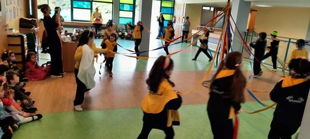 Ιδιαίτερα η Α΄ τάξη αφού έμαθε το γαϊτανάκι επισκέφθηκε το Νηπιαγωγείο.