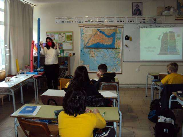 Συγκεκριμένα, η παρουσίαση πραγματοποιήθηκε με προβολή σχετικών βίντεο με την επίδειξη απολιθωμένων οργανισμών, με προσομοιώσεις τού γεωλογικού χρόνου, με χρήση βοηθητικών φυλλαδίων, παιχνιδιών και ακροστιχίδων.