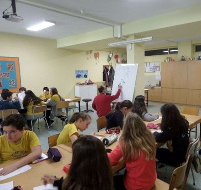 Κατόπιν οι μαθητές παρακολούθησαν τα πρώτα δεκαπέντε λεπτά τής ταινίας ‘‘Οι δώδεκα άθλοι τού Αστερίξ” και συμπλήρωσαν σχετικό φύλλο εργασίας.
