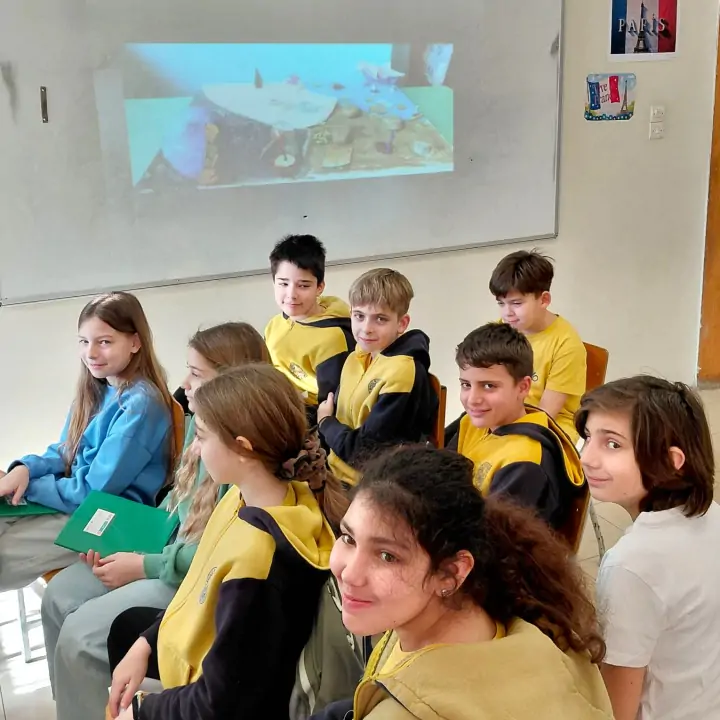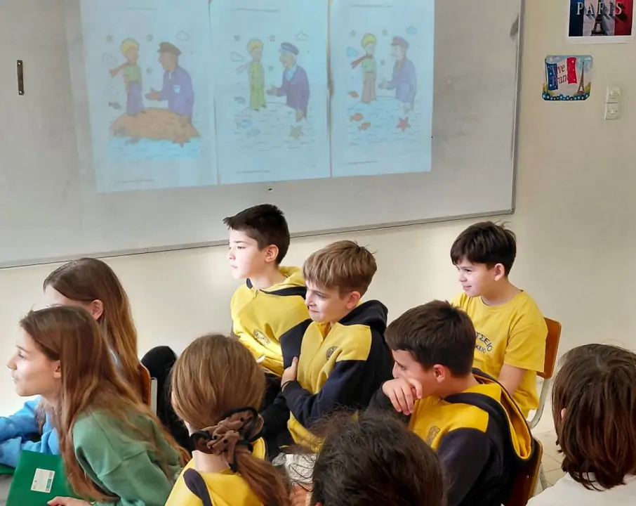 Η αρχή έγινε με την ποιητική προσέγγιση των μαθητών/τριών της Ε’ τάξης του Β’ Αρσακείου-Τοσιτσείου Δημοτικού Σχολείου Εκάλης, οι οποίοι/ες, μέσα από το βίντεο «Du ciel à la mer : la météo du voyage» το οποίο επεξεργάστηκαν και δημιούργησαν στο Εργαστήριο Δεξιοτήτων, σκηνοθέτησαν μια αναπάντεχη συνάντηση ανάμεσα στον Μικρό Πρίγκιπα και τον Ζακ-Υβ Κουστώ. Κεντρικό στοιχείο της αφήγησης αποτέλεσε το Ημερολόγιο του Κουστώ, το οποίο οι μαθητές/τριες κατάφεραν να αναπαραστήσουν με μοναδική παραστατικότητα. Μέσα από τις σελίδες αυτού του φανταστικού ημερολογίου, κατέγραψαν με γαλλικό λεξιλογικό πλούτο τις παρατηρήσεις τους, συνδέοντας τα καιρικά φαινόμενα (le soleil, la pluie, le vent) με τις εσωτερικές αναζητήσεις των δύο εξερευνητών. Πλαισιώνοντας την αναπαράσταση αυτή με υπέροχες ζωγραφιές, έδωσαν σάρκα και οστά σε έναν κόσμο όπου τα αστέρια καθρεφτίζονται στους ωκεανούς, ενώ οι στίχοι και η μουσική στο τραγούδι τους που έκλεισε το βίντεο λειτούργησαν ως ένας γλυκός αντίλαλος ανάμεσα στο διάστημα και τον βυθό.