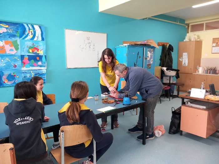 Τα παιδιά έμαθαν ότι η βιβλιοδεσία είναι μία απαιτητική διαδικασία η οποία απαιτεί αρκετό χρόνο και συγκέντρωση, με ιδιαίτερη έμφαση στη λεπτομέρεια, που προϋποθέτει προσεκτικές, εκλεπτυσμένες κινήσεις. Στη συνέχεια, μαζί με τον υπεύθυνο τού προγράμματος, οι μαθητές/-τριες πριόνισαν τη ράχη τού βιβλίου, το έραψαν προσεκτικά, το κόλλησαν, το στέγνωσαν και το έντυσαν με δέρμα που το διακόσμησαν με χρυσό.