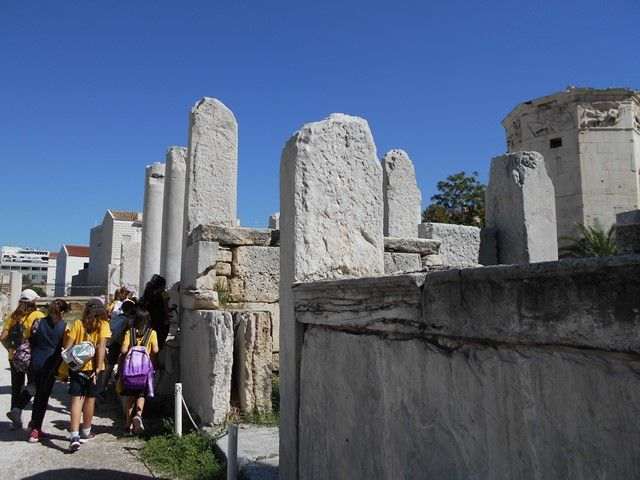 Ιδιαίτερη εντύπωση προκάλεσε στους μαθητές το οκταγωνικό κτίσμα των Αέρηδων, το γνωστό Ωρολόγιο τού Κυρρήστου με ανάγλυφους τους οχτώ κύριους ανέμους στα αντίστοιχα σημεία τού ορίζοντα, που συνδέεται και με το μάθημα τής Γεωγραφίας τους για τον προσανατολισμό.