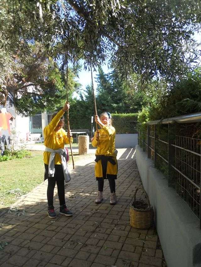 Τα παιδιά μας χάρηκαν με το «τίναγμα» τής ελιάς και το μάζεμα τού καρπού.