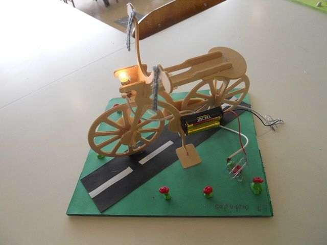 Στη συνέχεια προσάρμοσαν το απλό ηλεκτρικό τους κύκλωμα σε ένα ξύλινο ποδηλατάκι τριών διαστάσεων που συναρμολόγησαν με μεγάλη επιτυχία.