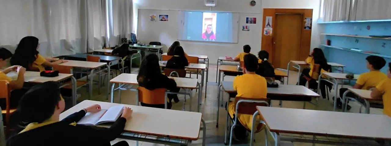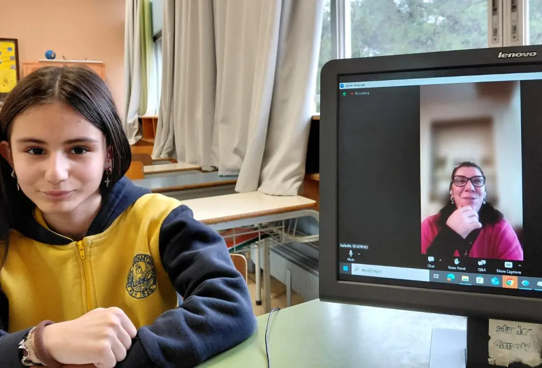 Συγκεκριμένα, οι μαθητές τής ΣΤ΄ τάξης, που διδάσκονται τη Γαλλική ως β΄ ξένη γλώσσα, μαζί με τις καθηγήτριές τους κ. Έφη Γεώργα και κ. Έλενα Βιολάρη, την Πέμπτη 6 Φεβρουαρίου 2026, παρακολούθησαν σε ζωντανή σύνδεση τη γαλλίδα Ολυμπιονίκη και Πρωταθλήτρια της ενόργανης γυμναστικής Isabelle Severino.