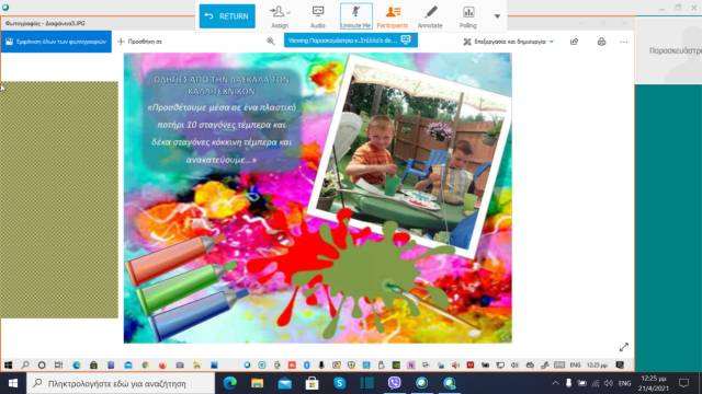 Στo πλαίσιo τού μαθήματος τής Μελέτης Περιβάλλοντος, με τη δασκάλα τους κ. Αναστασία Δήμα, η Δ΄ τάξη τού Β΄Αρσακείου-Τοσιτσείου Δημοτικού Εκάλης, στις 20 Απριλίου 2021, πραγματοποίησε για πρώτη φορά πειράματα με τη βοήθεια τής χημικού-παρασκευάστριας τού Σχολείου κ. Στέλλας Χωριανοπούλου.