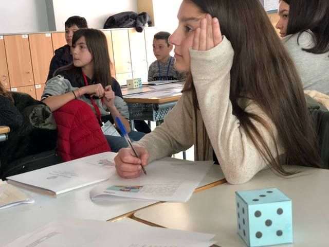 Στη συνέχεια μίλησαν για τα εργαλεία τού ζωγράφου: το πινέλο, το καβαλέτο, τη λαδομπογιά, την τέμπερα. Έκαναν πειράματα με τα χρώματα και είδαν πως κάθε χρώμα αναλύεται σε αυτά που το αποτελούν. Τέλος έφτιαξαν τον δικό τους πίνακα ζωγραφικής.