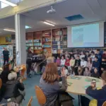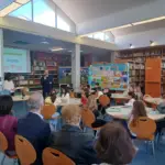 Στον φιλόξενο χώρο τής σχολικής βιβλιοθήκης, ο συγγραφέας παρουσίασε την ιστορία μέσα από τη δική του οπτική, συνομίλησε με τα παιδιά και απάντησε με προθυμία στις ερωτήσεις τους. Μέσα από διαδραστικές δραστηριότητες και παιχνίδια δημιούργησε μια ζεστή και οικεία ατμόσφαιρα, ενθαρρύνοντας τη συμμετοχή όλων.