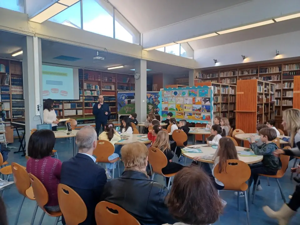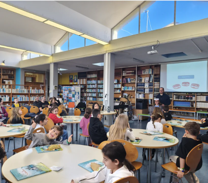 Στον φιλόξενο χώρο τής σχολικής βιβλιοθήκης, ο συγγραφέας παρουσίασε την ιστορία μέσα από τη δική του οπτική, συνομίλησε με τα παιδιά και απάντησε με προθυμία στις ερωτήσεις τους. Μέσα από διαδραστικές δραστηριότητες και παιχνίδια δημιούργησε μια ζεστή και οικεία ατμόσφαιρα, ενθαρρύνοντας τη συμμετοχή όλων.