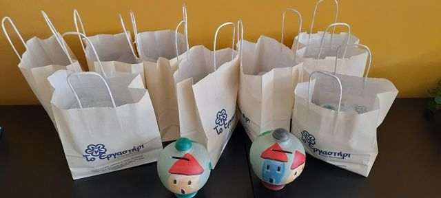 δ) το «Εργαστήρι» με την αγορά κουμπαράδων ζωγραφισμένων στο χέρι από τροφίμους τού Ιδρύματος Ατόμων με Νοητική Υστέρηση. Επιπλέον οικονομική ενίσχυση έλαβε το ίδρυμα και μέσα από την περιφορά τού κουμπαρά «Σπιτάκι» για την αγορά χριστουγεννιάτικων κεραμικών στολιδιών, χειροποίητων αρωματικών σαπουνιών και χειροποίητων παιδικών κοσμημάτων, όλα δημιουργήματα των τροφίμων τού ιδρύματος.