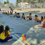 Ακολούθως συνοδεία των δασκάλων και του Διευθυντή του Σχολείου, κου Ευαγγέλου Στάθη, κάθε μαθητής και μαθήτρια της Στ΄ τάξης ανέλαβε να οδηγήσει το «πρωτάκι» του στους υπαίθριους χώρους άθλησης, όπου με την καθοδήγηση των καθηγητριών Φυσικής Αγωγής έπαιξαν διάφορα παιχνίδια.