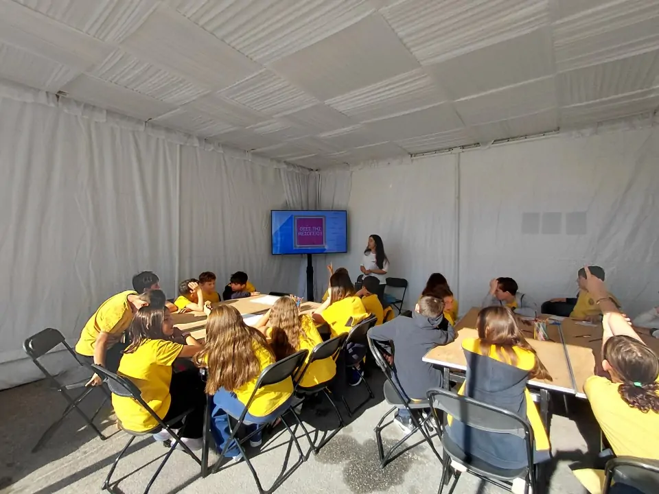 Σε ειδικά διαμορφωμένη αίθουσα, οι μαθητές/τριες συμμετείχαν σε μια ψηφιακή εμπειρία διάρκειας 7 λεπτών με θέμα τις ιστορικές πόλεις της Μεσογείου, ανακαλύπτοντας μνημεία και πολιτιστικά τοπία μέσα από τη δύναμη της τεχνολογίας.
