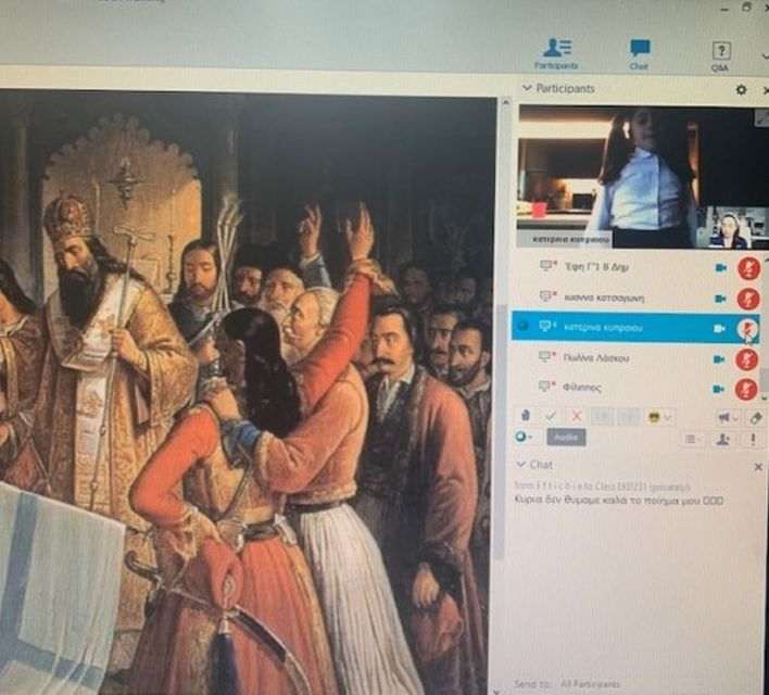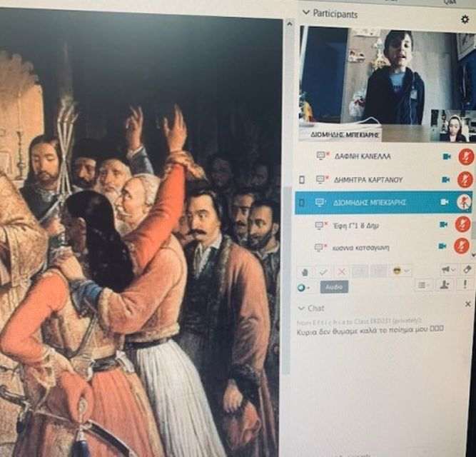 Στο μάθημα τής Μουσικής τα παιδιά τραγουδήσαν επετεικά τραγούδια όπως «Ο Θούριος» και «Το μικρό κλεφτόπουλο».