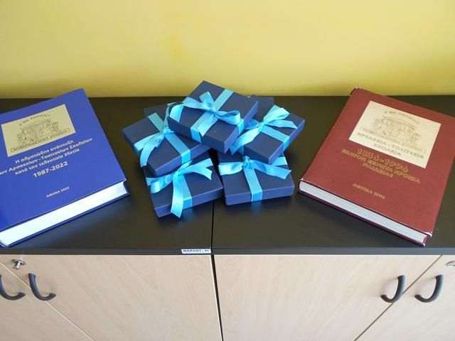 Στη συνέχεια ο Διευθυντής τούς απένειμε αναμνηστικό δώρο και τους ευχήθηκε καλή πρόοδο.