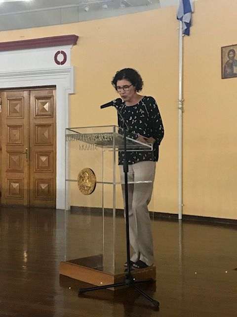 Μετά την ακολουθία τού Αγιασμού η Διευθύντρια τού Α΄ Αρσακείου-Τοσιτσείου Γυμνασίου Εκάλης απευθύνθηκε στους μαθητές και τους ευχήθηκε δημιουργική σχολική χρονιά.
