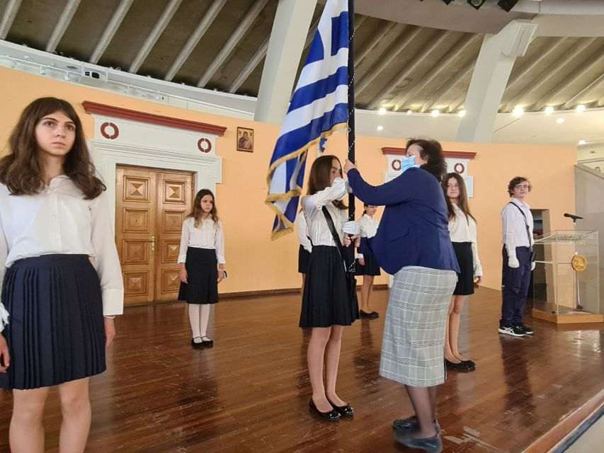Την Πέμπτη 21 Οκτωβρίου 2021, στο Θέατρο των Σχολείων, παρουσία των γονέων των μαθητών και εκπροσώπων των εκπαιδευτικών τού Σχολείου, πραγματοποιήθηκε η τελετή παράδοσης και παραλαβής τής Σημαίας στη σημαιοφόρο Ναταλία Φλίγγερ, μαθήτρια τής Γ΄τάξης, και στους παραστάτες μαθητές των Γ΄, Β΄, και Α΄ τάξεων από τη Διευθύντρια κ. Ευδοκία Γιαννικοπούλου.