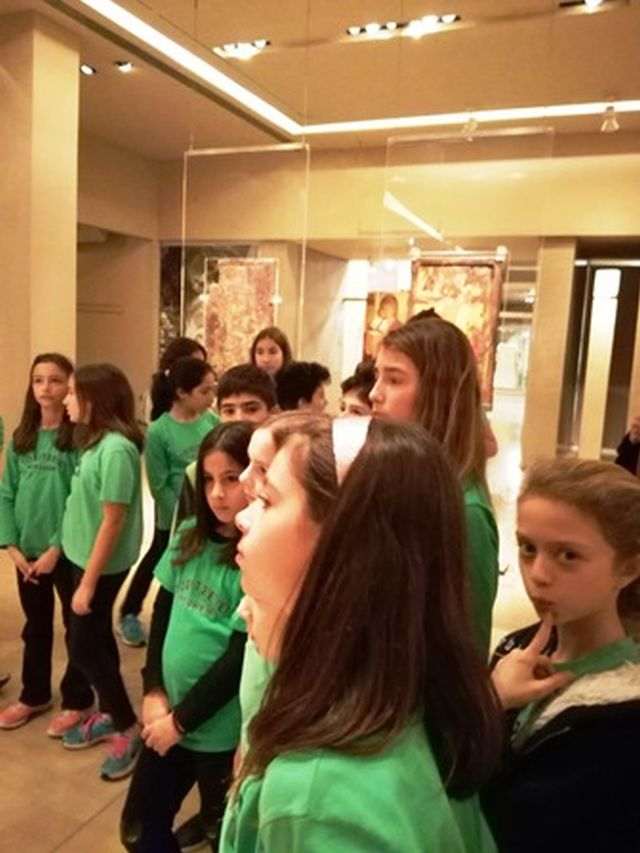 Με τη βοήθεια των ξεναγών τα παιδιά γνώρισαν τον βυζαντινό πολιτισμό μέσα από σκεύη καθημερινής χρήσης, νομίσματα, γλυπτά και, κυρίως, εικόνες, δημιουργήματα, όλα, τής βυζαντινής περιόδου.