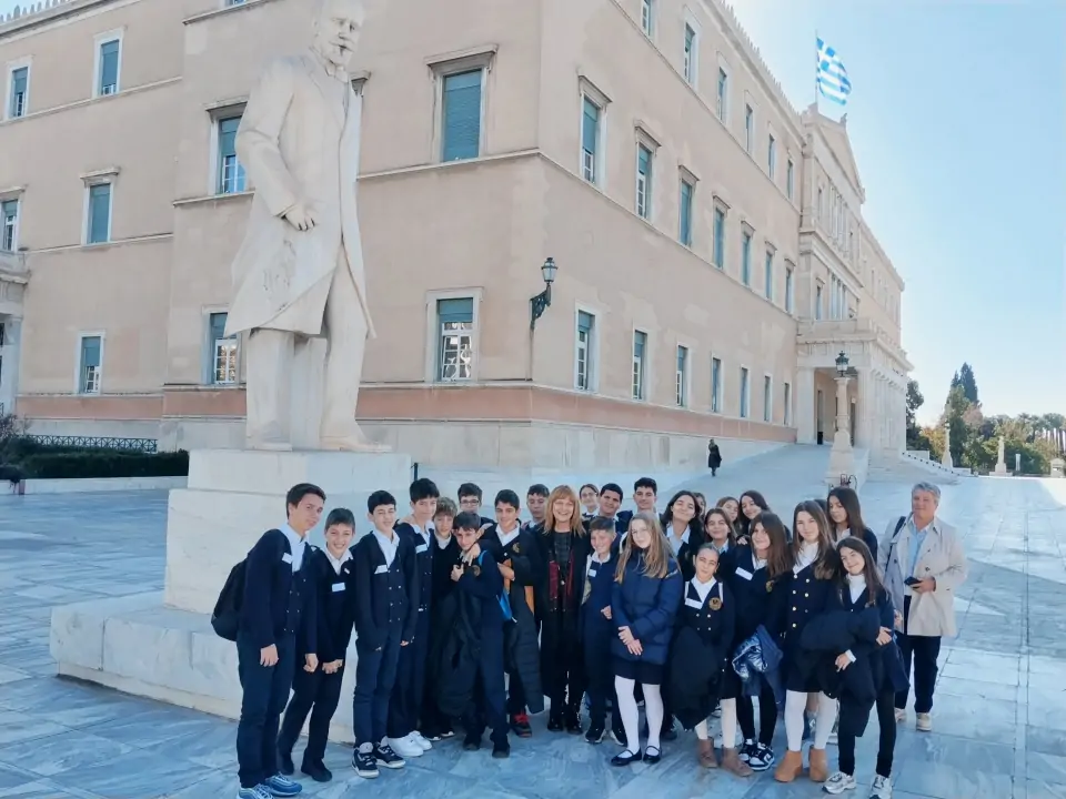 Ταυτόχρονα, ο Πρόεδρος της Βουλής ενημερώθηκε για την παρουσία των τμημάτων του Σχολείου μας και απηύθυνε χαιρετισμό, γεγονός που ενθουσίασε και εξέπληξε τους μαθητές. Αποχωρώντας από το κτήριο, τα παιδιά στάθηκαν στο Μνημείο του Άγνωστου Στρατιώτη και παρακολούθησαν την αλλαγή φρουράς των Ευζώνων.