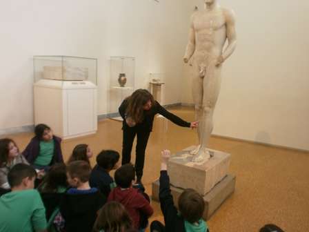 Οι μαθητές θαύμασαν κυρίως τη συλλογή γλυπτών τού Μουσείου, που θεωρείται από τις σημαντικότερες στον κόσμο. Βασικός άξονας τής έκθεσης είναι η παρουσίαση τής εξέλιξης τής γλυπτικής στον ελλαδικό χώρο από τη γένεση τής μνημειακής γλυπτικής (7ο αι. π.Χ.) μέχρι και το τέλος τής Ρωμαιοκρατίας (4ο αι. μ.Χ.). Τα γλυπτά που εκτίθενται είναι μοναδικά έργα τέχνης από την ηπειρωτική Ελλάδα και τα νησιά τού Αιγαίου: περίοπτα αγάλματα, ανάγλυφα, σαρκοφάγοι, προτομές, βωμοί, αγάλματα ζώων, ερμαϊκές στήλες και διάφορα άλλα όπως σειρήνες, σφίγγες κ.λπ. Μαζί με τα γλυπτά εκτίθενται και ορισμένα αγγεία και χάλκινα ειδώλια έτσι, ώστε να παρουσιάζεται η εξέλιξη τής αρχαίας ελληνικής τέχνης και να μπορεί ο επισκέπτης να κατανοήσει πλήρως την κάθε εποχή μέσα από τα ποικίλα τεχνουργήματά της.