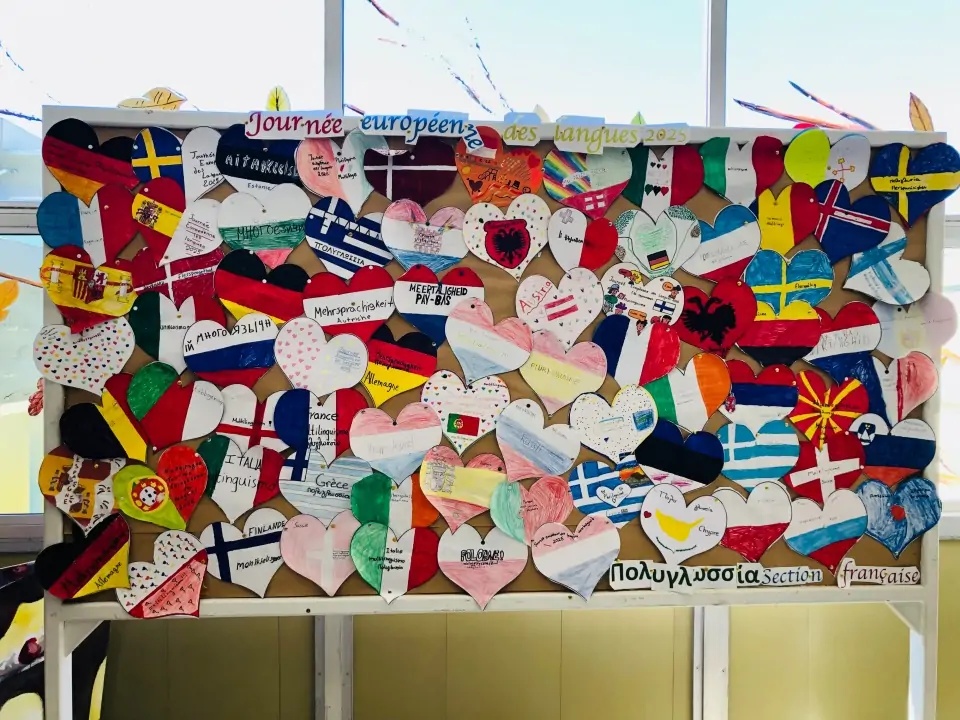 Στο πλαίσιο αυτό, οι μαθητές της Γ’ και Δ’ Δημοτικού ζωγράφισαν αφίσες με τις σημαίες ευρωπαϊκών χωρών και την ονομασία τους στα Γαλλικά. Επιπλέον, έμαθαν με πολλή χαρά ένα τραγούδι που συνέθεσε το γαλλικό τμήμα με στίχους σε διάφορες γλώσσες με χρήση της Τεχνητής Νοημοσύνης.