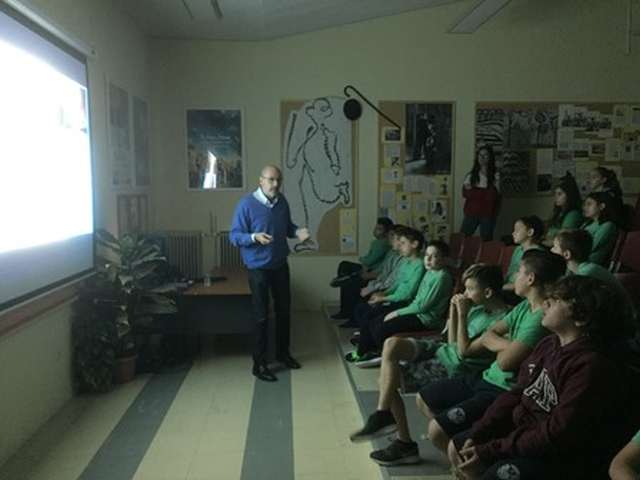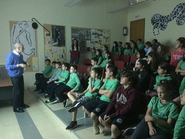 Στις 11 Νοεμβρίου 2019 ο κ. Francis Baker, υπεύθυνος σύμβουλος των εκπαιδευτικών εκδόσεων “Macmillan Education”, προσπάθησε, σε απλά Αγγλικά και μέσα από μια διαδραστική και βιωματική παρουσίαση, να ευαισθητοποιήσει περισσότερο τους μαθητές τής Στ΄ τάξης τού Αγγλικού Τμήματος τού Γ΄ Αρσακείου-Τοσιτσείου Δημοτικού Εκάλης σε θέματα που αφορούν στην κλιματική αλλαγή και στις επιπτώσεις αυτής στη βιωσιμότητα τού πλανήτη μας.