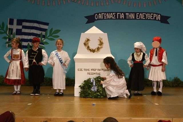 Τα παιδιά των υπόλοιπων τμημάτων πλαισίωσαν τη γιορτή με επετειακά τραγούδια που δίδαξε η κ. Χριστίνα Πουλίδη.