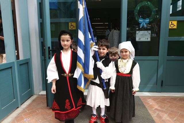 Μετά τη λήξη τής γιορτής όλα τα παιδιά, με ενθουσιασμό και καμάρι, έκαναν παρέλαση στους εξωτερικούς χώρους τού Νηπιαγωγείου.