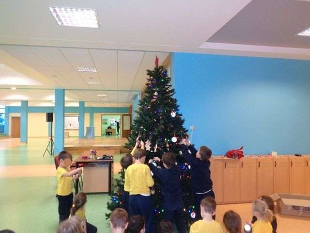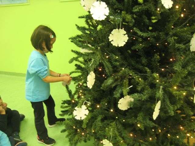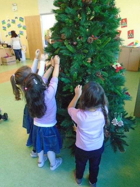Τα νήπια και τα προνήπια με πολλή χαρά και ενθουσιασμό διάλεξαν και κρέμασαν τα στολίδια που τους άρεσαν, βάζοντας έτσι το καθένα τη δική του μοναδική πινελιά στη χριστουγεννιάτικη διακόσμηση τού Σχολείου.