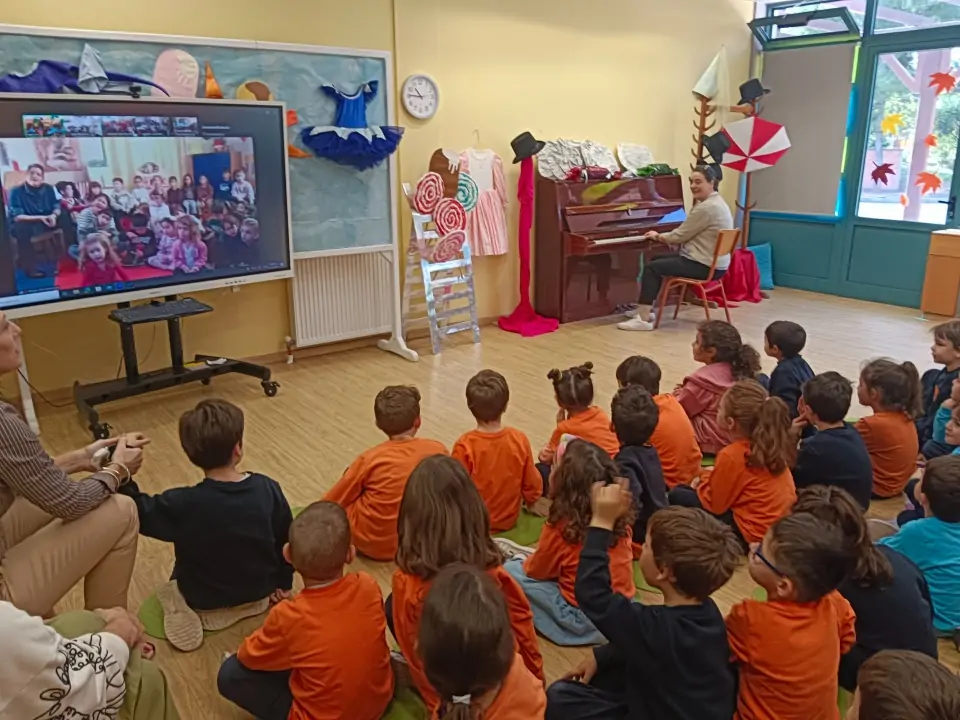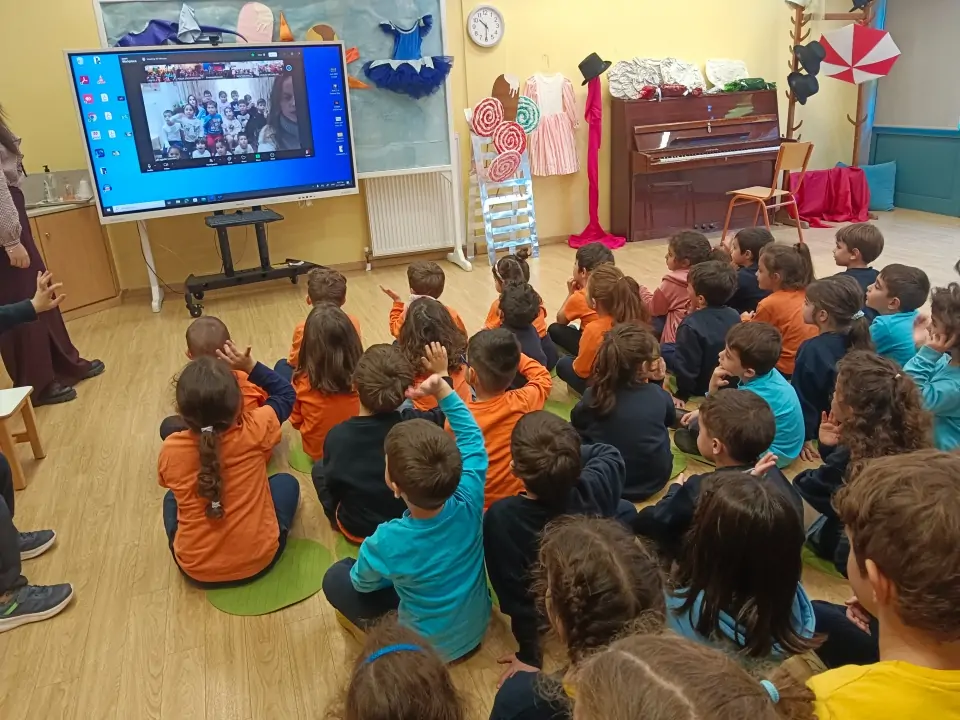 Η δράση περιλάμβανε τραγούδια και χορευτικές δραστηριότητες από παιδιά και εκπαιδευτικούς, δημιουργώντας ένα ζεστό και συνεργατικό κλίμα. Οι μικροί μαθητές είχαν την ευκαιρία να γνωρίσουν συνομηλίκους από άλλα σχολεία, να ανταλλάξουν χαιρετισμούς και χαμόγελα και να ζήσουν μια πρωτόγνωρη εμπειρία επικοινωνίας μέσα από την τεχνολογία, η οποία λειτούργησε ως γέφυρα που ένωσε διαφορετικές σχολικές κοινότητες σε ένα κοινό διαδικτυακό περιβάλλον. Παράλληλα, καλλιεργήθηκαν σημαντικές αξίες, όπως η επικοινωνία, η αλληλεπίδραση και η δημιουργικότητα.