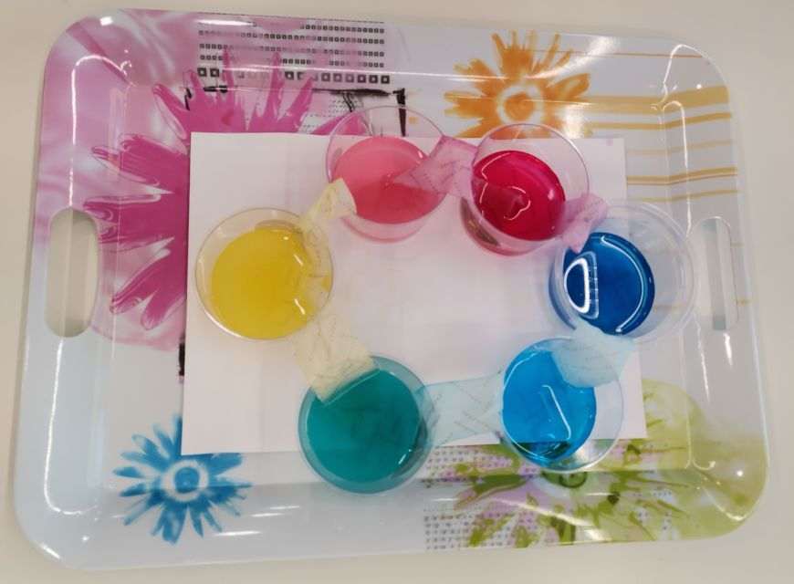 Για την παρατήρηση τού φαινομένου χρησιμοποίησαν δοχεία, νερό, χρώματα ζαχαροπλαστικής και χαρτί κουζίνας.