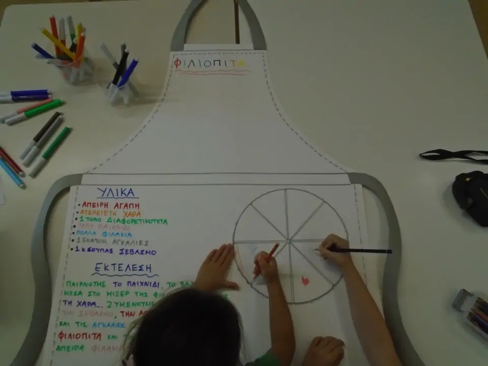 Παράλληλα, δημιουργήσαμε και τη «φιλιόπιτα», με «υλικά» από αγάπη, ευγένεια και αποδοχή. Μέσα από το παιχνίδι και τη συμβολική αυτή πράξη, τα παιδιά βιώνουν το αίσθημα, αλλά και την αξία τού να ανήκουν σε μια ομάδα που σέβεται, υποστηρίζει και νοιάζεται. Με τέτοιες δράσεις δημιουργούμε, έτσι, τις βάσεις για μια χρονιά γεμάτη εμπιστοσύνη, ασφάλεια και ουσιαστική επικοινωνία ανάμεσα σε συμμαθητές και δασκάλους.