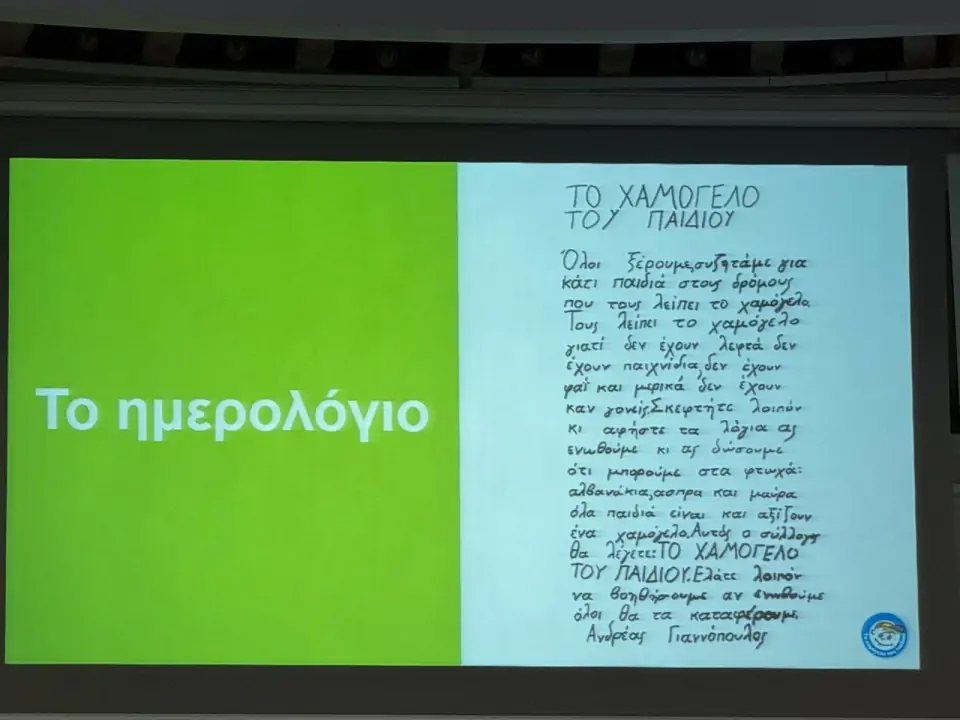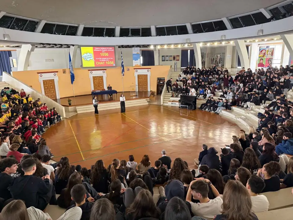 Ο κ. Γιαννόπουλος μίλησε από καρδιάς και με θέρμη για το όραμα τού Οργανισμού και έδωσε, στη συνέχεια, τον λόγο σε συνεργάτες του, οι οποίοι ενημέρωσαν τις μαθήτριες και τους μαθητές μας για το έργο τους και την ευαισθησία που δείχνουν σε σοβαρά ζητήματα που αφορούν τα παιδιά και τους εφήβους, δίνοντας ιδιαίτερη έμφαση στη λειτουργία τής Γραμμής Υποστήριξης στον αριθμό 1056.