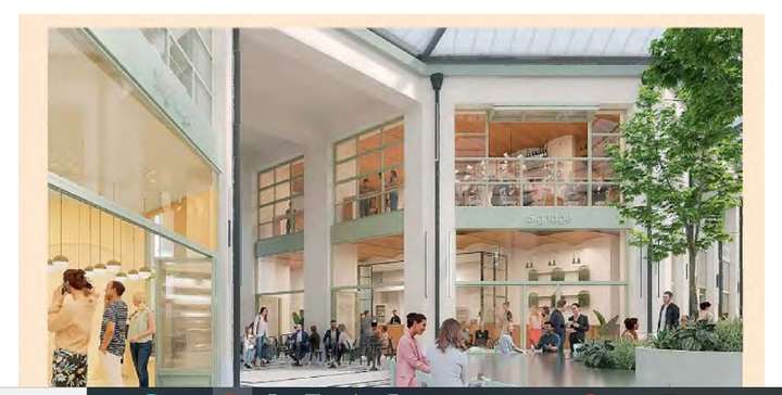 Κάτω από τον γυάλινο θόλο θα βρίσκεται ο χώρος της συνεστίασης: ένας μεγάλος κυκλικός πάγκος όπου οι επισκέπτες θα μπορούν να παίρνουν τον δίσκο με το φαγητό τους από οποιοδήποτε κατάστημα εστίασης.