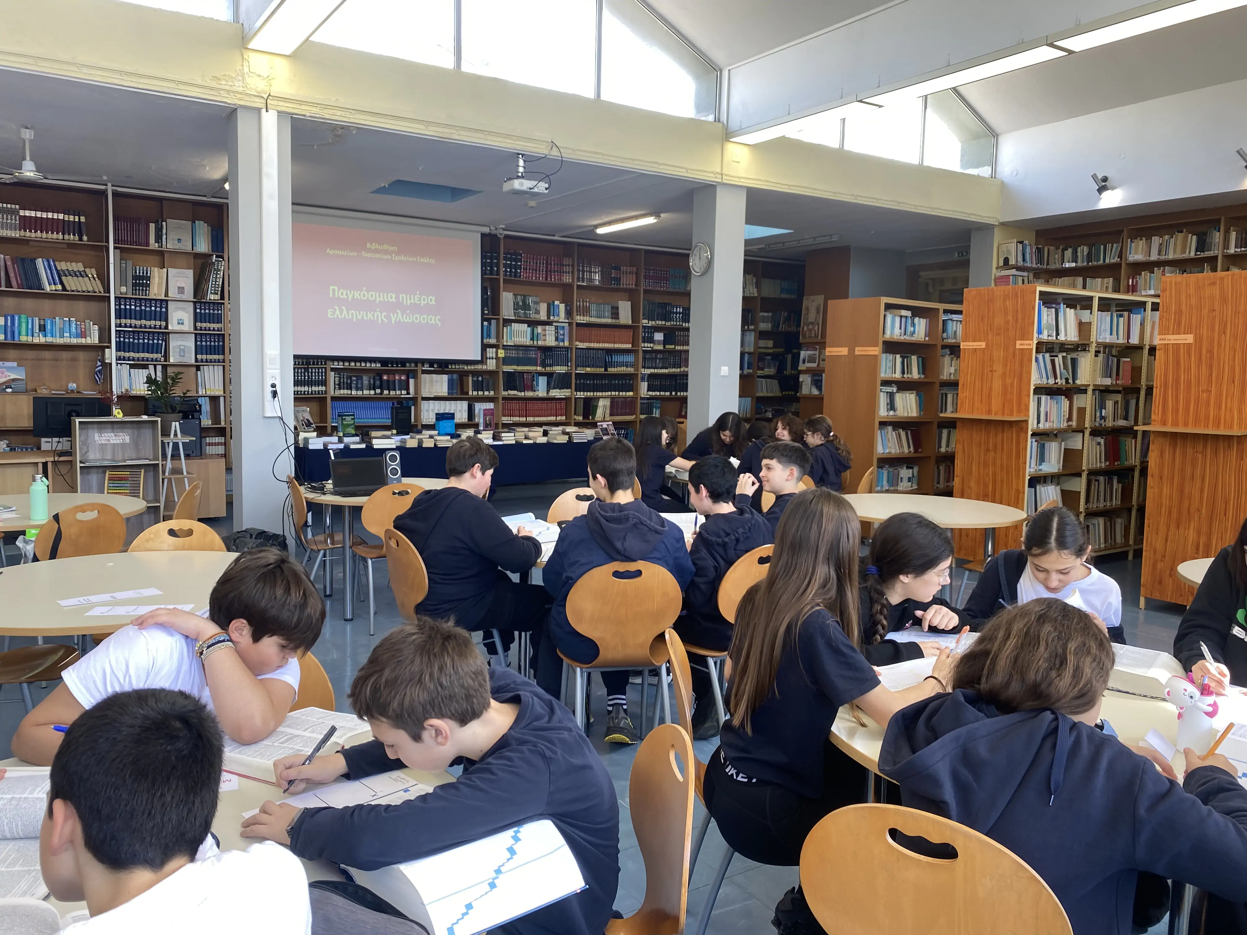 - Μαθητές γυμνασίου συμμετέχουν στο εργαστήριο δημιουργίας λεξικού της τάξης τους αναζητώντας λέξεις μέσα από τα λεξικά της Βιβλιοθήκης