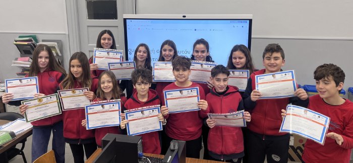 Σημαντική διάκριση έλαβε η μαθήτρια τού Στ΄2 τμήματος Ελισσάβετ Τσαρμποπούλου, η οποία συγκέντρωσε μια από τις υψηλότερες βαθμολογίες Πανελλαδικά! Επίσης, όλα τα παιδιά έλαβαν πιστοποιητικά συμμετοχής αλλά και διάκρισης από τον φορέα διοργάνωσης. Η συμμετοχή, καθώς και οι επιδόσεις των μαθητών μας, είναι ιδιαίτερα σημαντικές, εάν λάβουμε υπόψη ότι συμμετείχαν συνολικά περισσότεροι από 28.000 μαθητές από όλη την Ελλάδα!