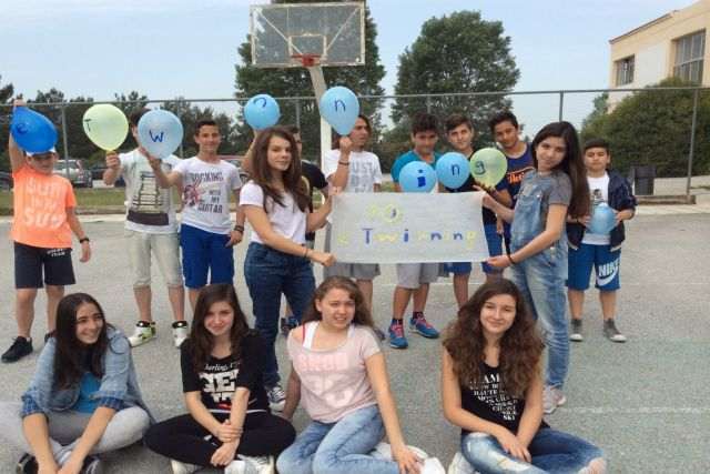 Στο πλαίσιο τού εορτασμού αυτού, οι μαθητές τής Α΄ τάξης φούσκωσαν μπλε και κίτρινα μπαλόνια και, αφού έγραψαν πάνω σε αυτά ξεχωριστά τα γράμματα τής λέξης e-twinning, βγήκαν στον προαύλιο χώρο τού Σχολείου και τα απελευθέρωσαν στον αέρα. Επιπλέον, σχεδίασαν και έβαψαν τον λογότυπο των 10 χρόνων σε μία αφίσα, την οποία τοποθέτησαν σε κεντρικό σημείο στον εσωτερικο χώρο τού Σχολείου, ώστε να μπορούν να τη δούν όλοι οι μαθητές. Επίσης, μαθήτριες τής τάξης, χρησιμοποιώντας την τεχνική τού face painting, ζωγράφισαν στα πρόσωπα των συμμαθητών τους τα γράμματα τής λέξης e-twinning, ώστε, όταν αυτοί στέκονταν ο ένας πίσω από τον άλλο, να εμφανίζεται η αγγλική λέξη στα πρόσωπά τους.