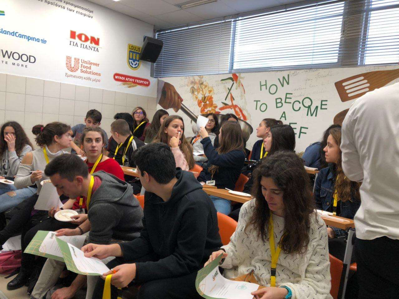 Συγχρόνως απαντούσε στις ερωτήσεις και απορίες των μαθητευόμενων νεαρών “chefs”.