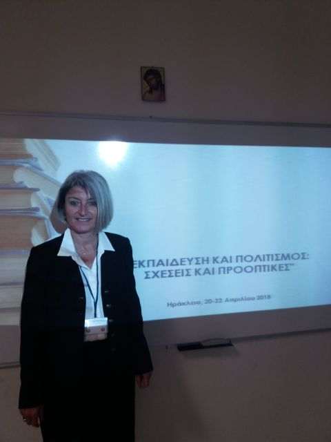 Την εισήγησή της με τίτλο «Η φωνή τής Συγκριτικής Λογοτεχνίας στο μάθημα των Γαλλικών. Μία πρόκληση. Γιατί;» με άξονα τη διαπολιτισμική εκπαίδευση παρακολούθησαν καθηγητές και Σχολικοί Σύμβουλοι με πρόεδρο τον κ. Γεώργιο Μαμάκη, Σχολικό Σύμβουλο Δημοτικής Εκπαίδευσης Λασιθίου.