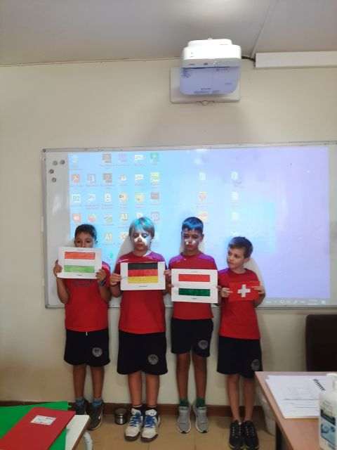 Στην Δ΄τάξη οι μαθητές ζωγράφισαν σημαίες από διάφορες χώρες τής Ευρώπης, εμπεδώνοντας ταυτόχρονα και τα χρώματα στη γερμανική γλώσσα.