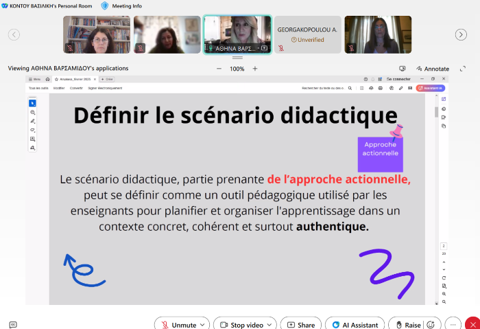 Οι καθηγήτριες Γαλλικών τών Αρσακείων Σχολείων Αθήνας, Θεσσαλονίκης, Πάτρας και Ιωαννίνων συμμετείχαν στη διαδικτυακή επιμορφωτική συνάντηση με θέμα «Défis pour la classe de FLE: culture, numérique, inclusion» (Προκλήσεις στο μάθημα τών Γαλλικών: πολιτισμός, ψηφιακά εργαλεία, συμπερίληψη).