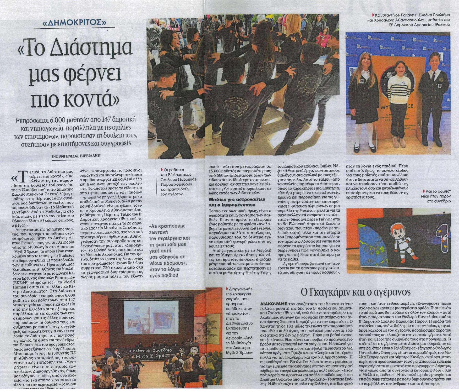 Με μεγάλη επιτυχία πραγματοποιήθηκε το 1ο Μαθητικό Συνέδριο του Διεθνούς Δικτύου Εκπαίδευσης «Από τη Μυθολογία στο Διάστημα-Myth2space» με τίτλο «Ο κόσμος ο μικρός, ο μέγας!», που πραγματοποιήθηκε στις 6, 7 και 8 Δεκεμβρίου 2024 στο Εθνικό Κέντρο Έρευνας Φυσικών Επιστημών «Δημόκριτος».