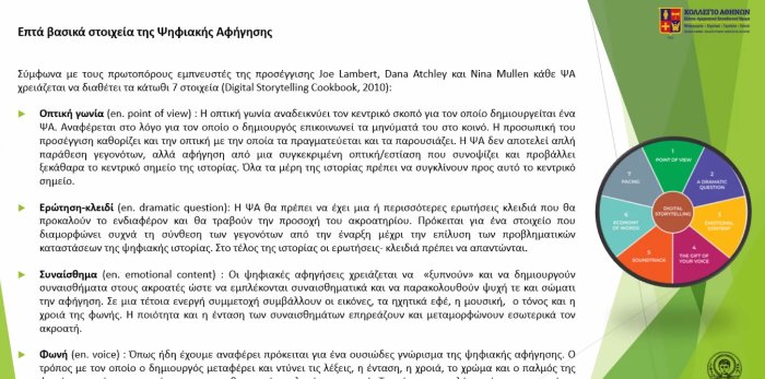 • Παρουσίαση τού πολυτροπικού εργαλείου τής Ψηφιακής Αφήγησης (ΨΑ)