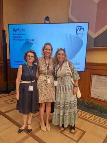 Οι καθηγήτριες Κοινωνικών και Οικονομικών Επιστημών τού Β΄Αρσακείου Λυκείου Ψυχικού κ. Ειρήνη Τσαντάκη και Δήμητρα Χατζηαγγελάκη παρακολούθησαν, στις 2 Σεπτεμβρίου 2025, την εκπαιδευτική ημερίδα Οικονομικών με θέμα “Χρήμα: Αποταμίευση, Επένδυση και Οικονομική Ανάπτυξη”, που έλαβε χώρα στην Τράπεζα τής Ελλάδος, από τις 9.00 έως τις 3.00 μμ.