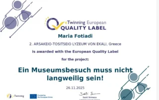 Ευρωπαϊκή Ετικέτα Ποιότητας eTwinning για το έργο: “Ein Museumsbesuch muss nicht langweilig sein”